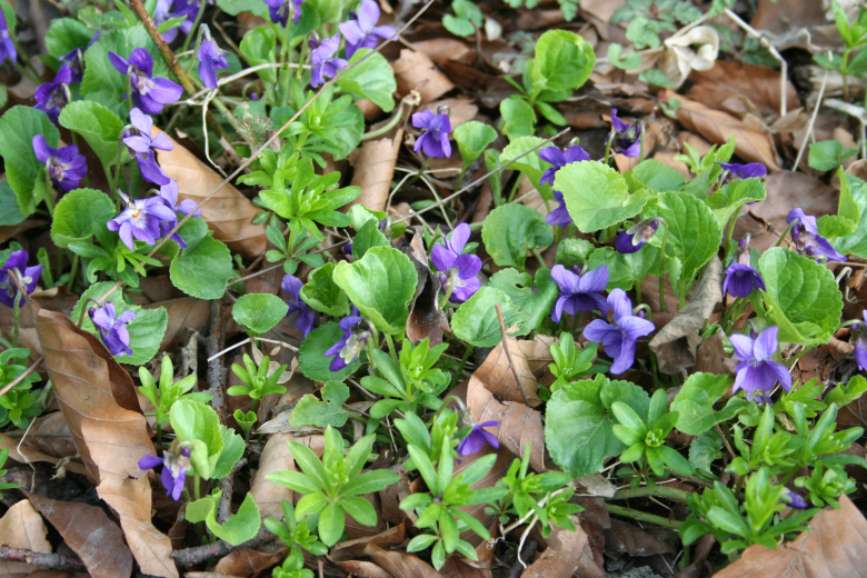 In unserem Kräuter-Riechgarten wachsen die Veilchen wild und suchen sich jedes Jahr einen neuen Platz.